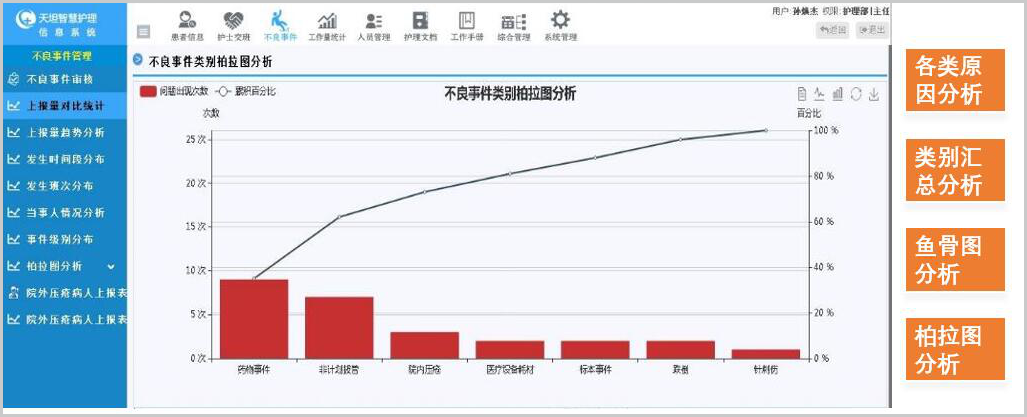 支持14項(xiàng)目+時(shí)間+科室+個(gè)人+患者 超精細(xì)化統(tǒng)計(jì)分析,自動(dòng)抽取 跌倒評(píng)估、墜床評(píng)估等護(hù)理文書數(shù)據(jù),進(jìn)行二次機(jī)構(gòu)化統(tǒng)計(jì)分析,極大降低工作量。