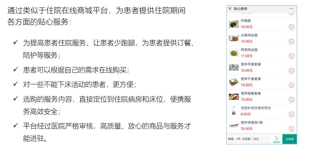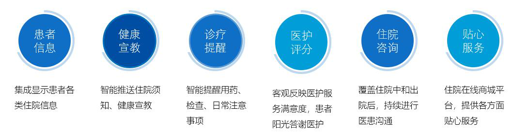 拓展床旁醫(yī)護(hù)、營養(yǎng)點餐、患者貼心服務(wù)、醫(yī)患交流、住院宣教、健康指導(dǎo)等功能,改善住院服務(wù)流程,改善患者就醫(yī)體驗,優(yōu)化醫(yī)患交互,改善醫(yī)療服務(wù)模式,提升智慧醫(yī)療的效率和水平。
