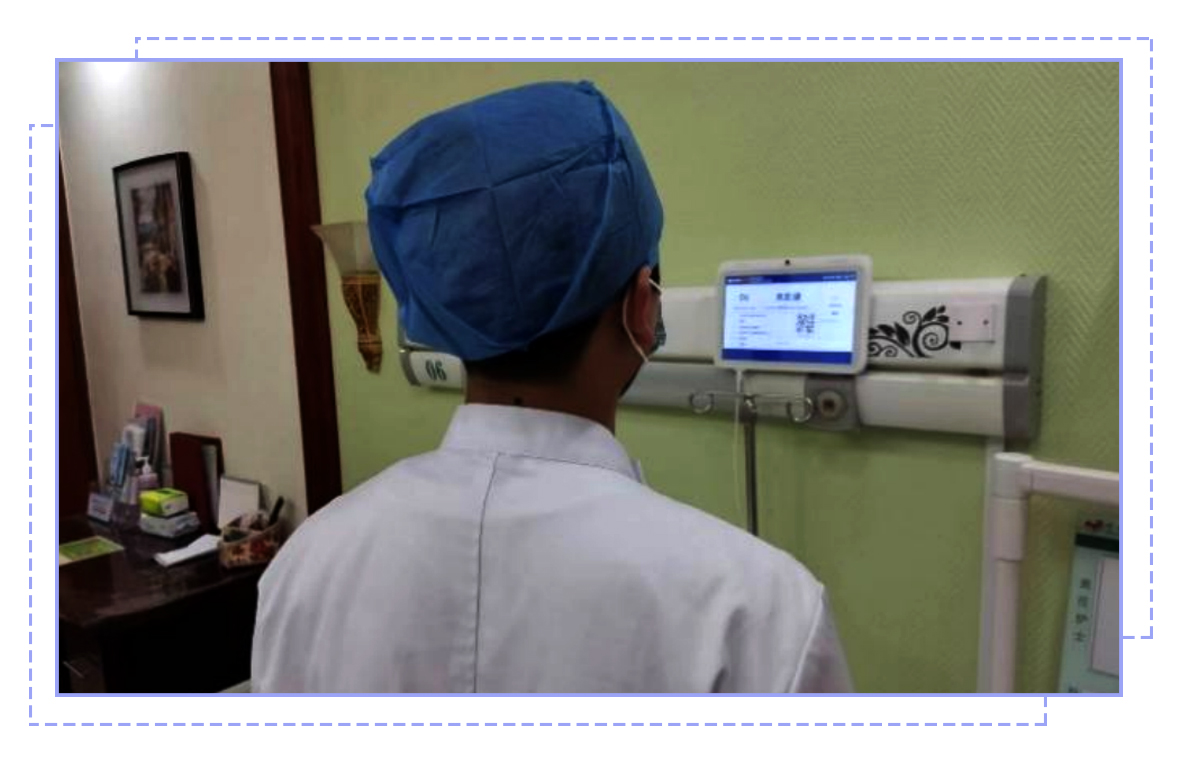 患者床頭屏是一個電子化的床頭卡,它結(jié)合了傳統(tǒng)的床頭呼叫器,患者需要幫助時可一鍵呼叫,并且它還可以實時更新患者數(shù)據(jù)顯示,有了它護士每日可快速完成三查七對的護理工作。